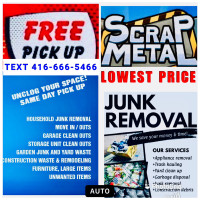 TEXT 289-943-7799 FREE SCRAP METAL PICK UP CHEAPEST JUNK REMOVAL. Ad Free Junk Removal Estimates in Your Area. Scrap Metal Pick Up Free Stuff in Oshawa Durham Region Find Scrap Metal Pick Up Free.